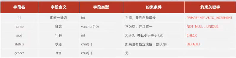 1 | alter table 表名 add 字段名 类型(长度)[comment 注释][约束]; #关键字段add表示添加的意思 |
